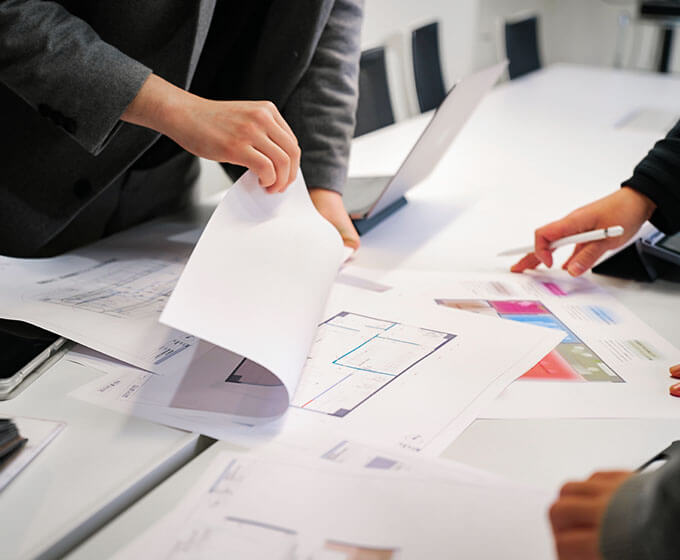お客様の理想とする形の一歩先の実現を目指し、オフィスコンセプトから基本計画・実施設計まで行い、働く上で本当の意味で心地よいと思える空間を計画します。